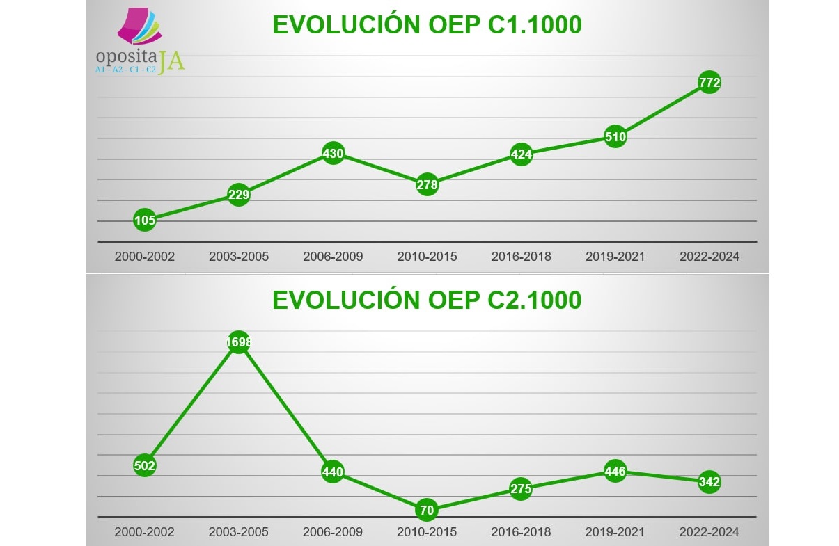 Desde OpositaJA analizamos la evolución de las OEP publicadas desde el año 2000 en los cuerpo C1 y C2